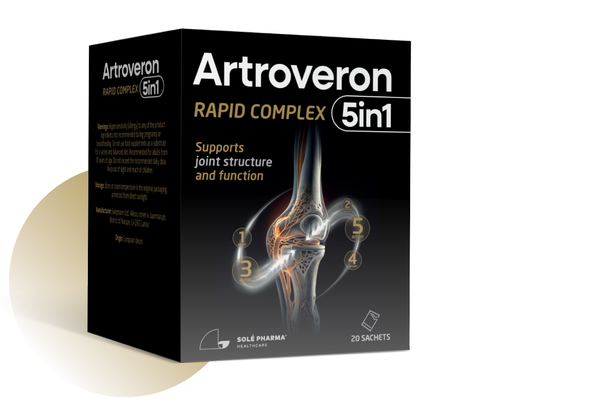 The Gold Standard approach: Joint health is complex and requires more than a single ingredient. Artroveron® 5in1 Rapid Complex delivers a multi-action solution.